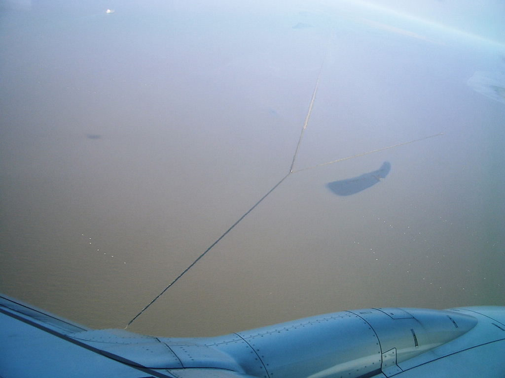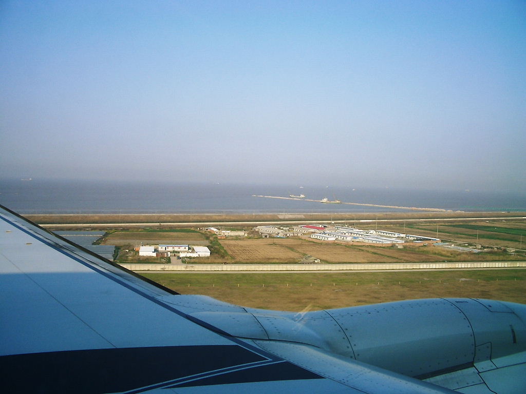 最近、浦東空港への着陸は海岸に沿ってある滑走路を使っての到着である