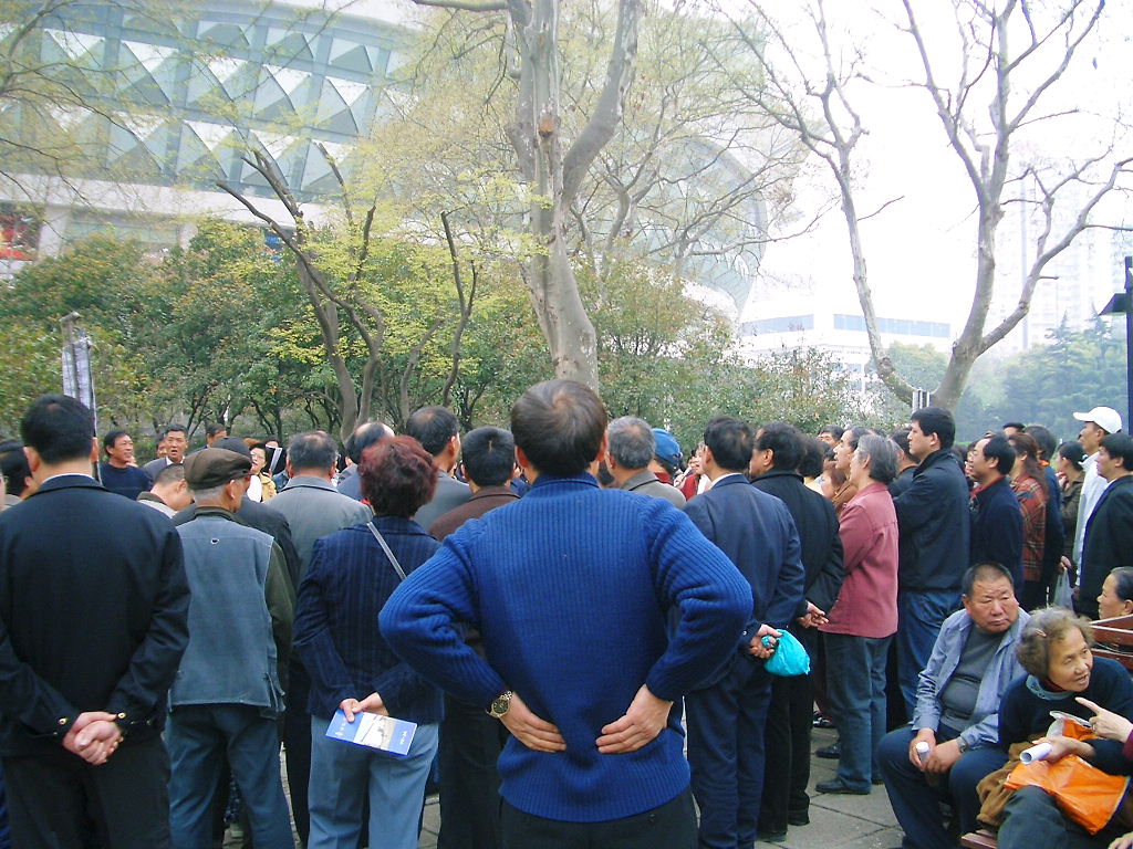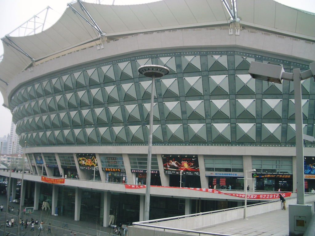 昨日の雨も気になりながら、魯迅公園へ行ってきた 高架軌道3号線へ乗り虹口足球場駅で下車し正面に見える体育館を超えれば魯迅公園である 虹口足球場の様子 昨日は少し肌寒くたくさん雨も降り、桜がどのような状態いなっているのか非常に気になっていた 現地へ行くとサクラは非常に少ない、景色を見てていてもなかなかサクラが見つからない やはり昨日の雨で多くの花が落ちていた、非常に残念であった 公園の中を歩いて行くとやたらに人が集まっているところがあった みんなで楽しそうに歌を歌っている40~50人からの人が指揮者を囲んでみんなで合唱だ