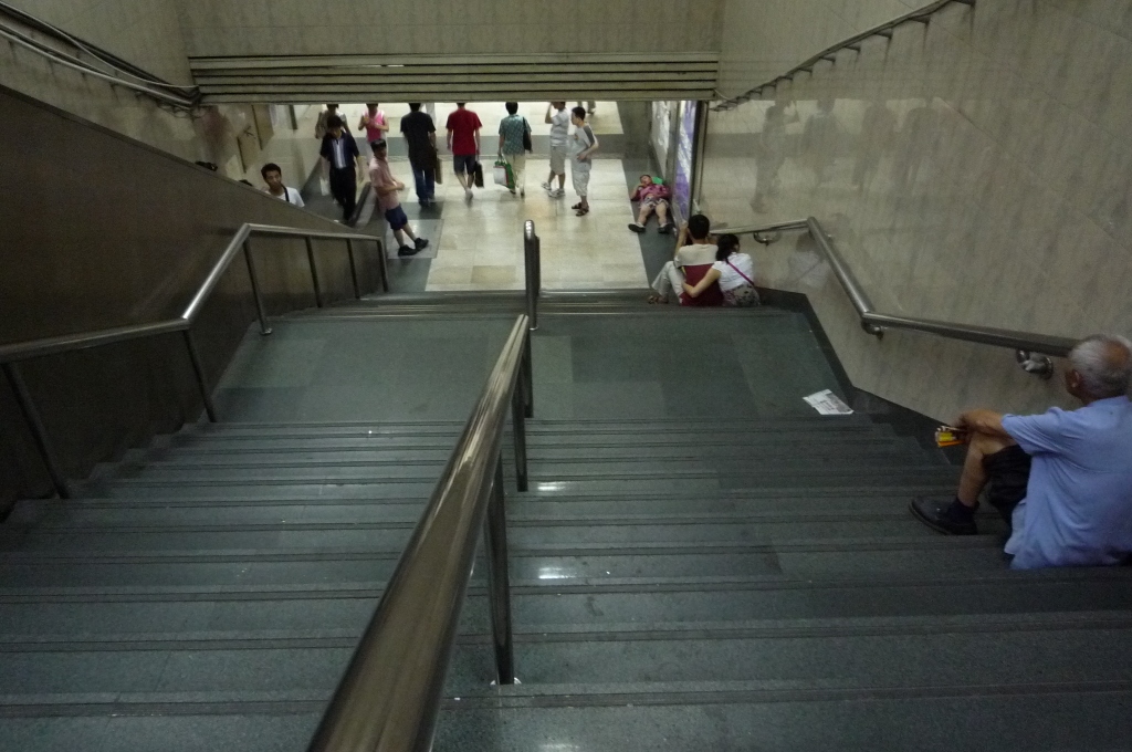 やっぱり居た、地下鉄の階段で涼んだり、気持ちよくお休みをする人たちが・・・