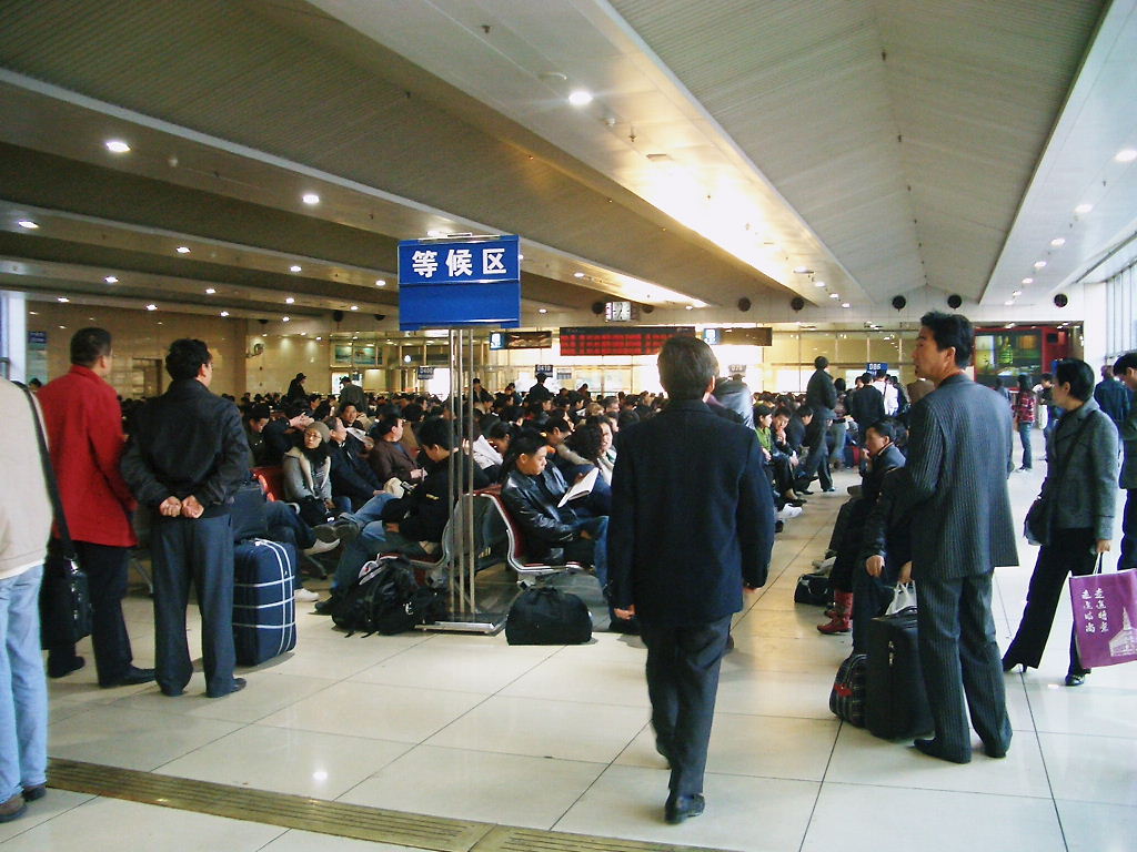 待合室でも非常に多くの人が待っている、時間がくるとホームへと移動ができる