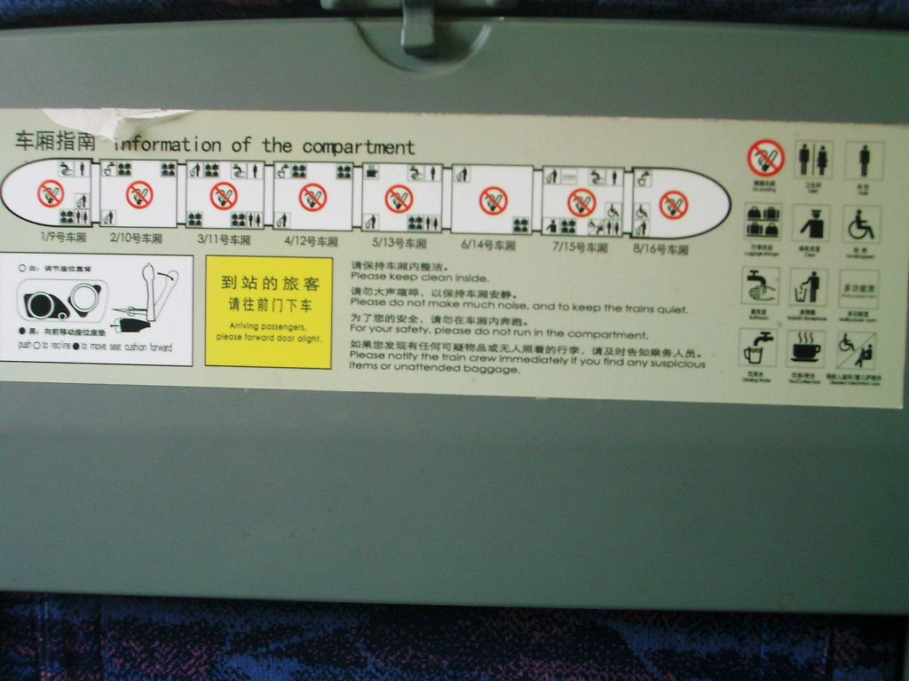 上海始発であったが既に満席状態である、社内は全て禁煙であり喫煙車両も当然ない