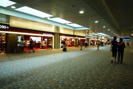 通過後は直ぐ正面にお店(免税店)などが並ぶ